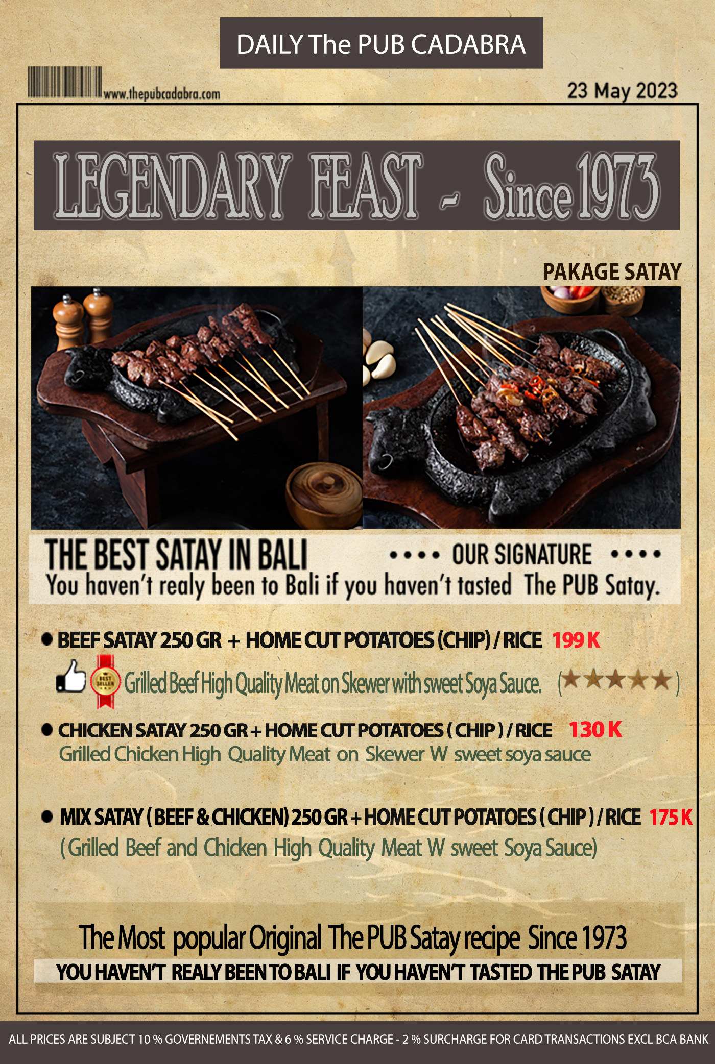Experience the extraordinary at our venue! Witness Magic Shows, Illusion Magic, and Live Music. Indulge in the pride of our establishment, The PUB Legendary Satay, renowned for its special taste since 1973.